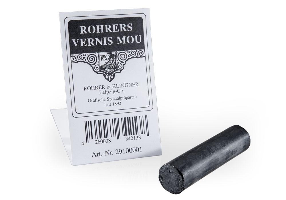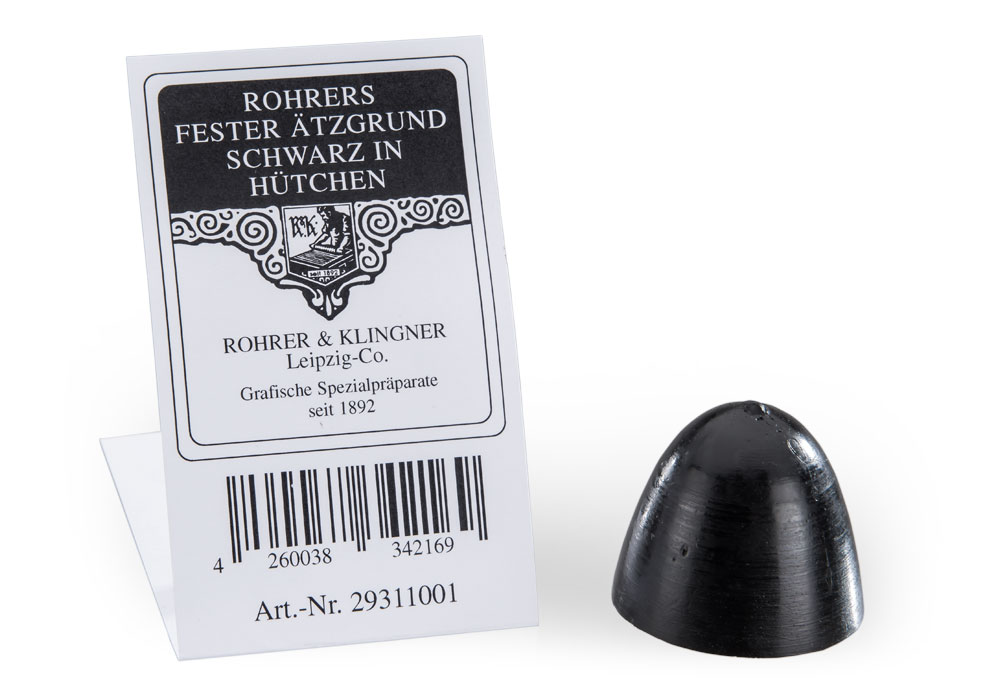 This common etching ground consists of an easily meltable wax that is also solvable in spirits of turpentine. After being molten, the wax can be spread evenly over the plate with the help of a roll or a pad.
