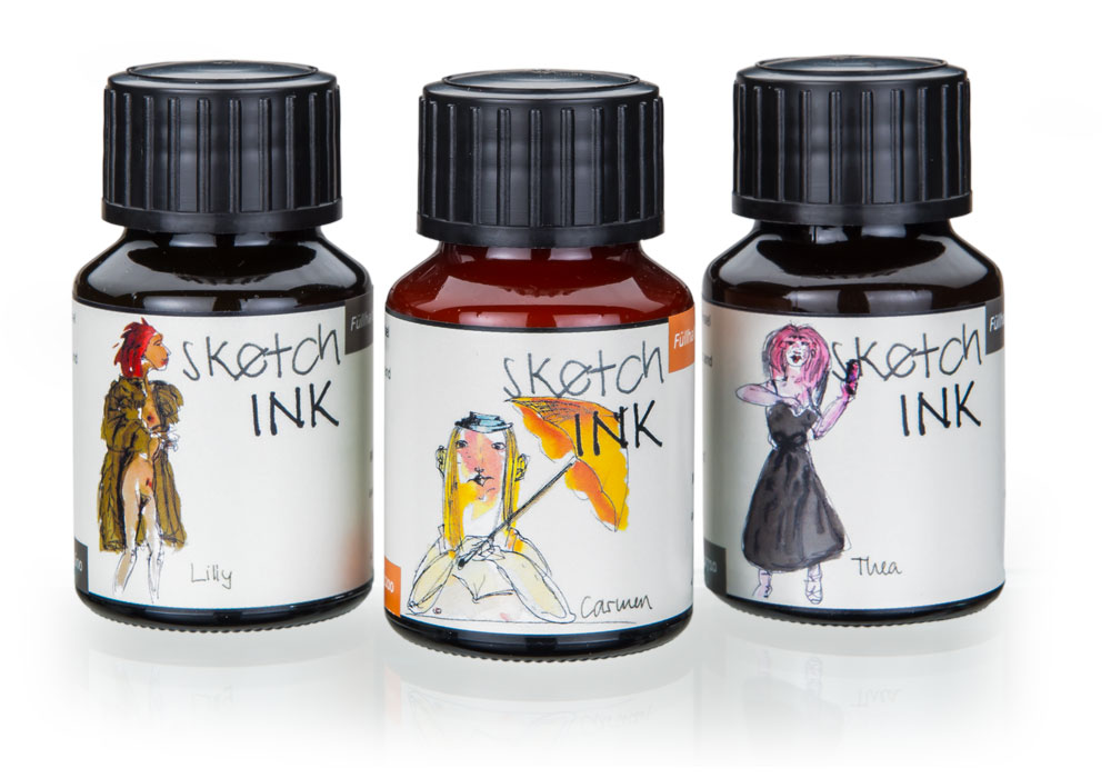 sketchINK® is a range of 10 inks for fountain pens. The broad range of colours offers outstanding versatility to its users. Not only can it be used on stylographs: sketchINK® can be used with quills or brushes as well. Moreover, it is exceptionally waterproof and lightfast.